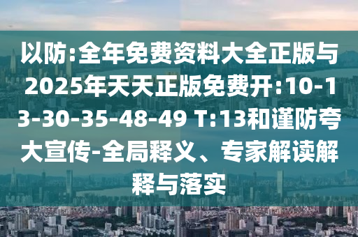 以防:全年免費(fèi)資料大全正版與2025年天天正版免費(fèi)開:10-13-30-35-48-49 T:13和謹(jǐn)防夸大宣傳-全局釋義、專家解讀解釋與落實(shí)