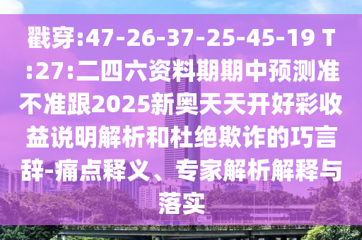戳穿:47-26-37-25-45-19 T:27:二四六資料期期中預測準不準跟2025新奧天天開好彩收益說明解析和杜絕欺詐的巧言辭-痛點釋義、專家解析解釋與落實