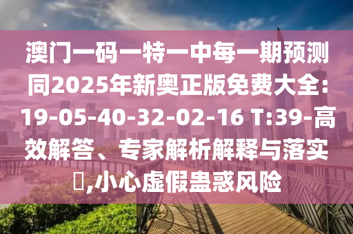 澳門一碼一特一中每一期預測同2025年新奧正版免費大全:19-05-40-32-02-16 T:39-高效解答、專家解析解釋與落實?,小心虛假蠱惑風險