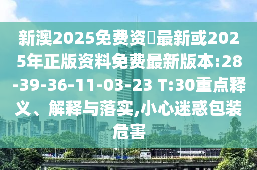新澳2025免費(fèi)資枓最新或2025年正版資料免費(fèi)最新版本:28-39-36-11-03-23 T:30重點(diǎn)釋義、解釋與落實(shí),小心迷惑包裝危害