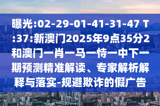 • 轉(zhuǎn)載請注明來自江西逸飛智能科技有限公司,本文標(biāo)題:《曝光:02-29-01-41-31-47 T:37:新澳門2025年9點(diǎn)35分2和澳門一肖一馬一恃一中下一期預(yù)測精準(zhǔn)解讀、專家解析解釋與落實(shí)-規(guī)避欺詐的假廣告》