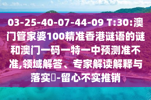 03-25-40-07-44-09 T:30:澳門管家婆100精準香港謎語的謎和澳門一碼一特一中預測準不準,領域解答、專家解讀解釋與落實?-留心不實推銷