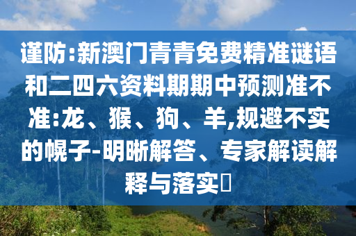 謹防:新澳門青青免費精準謎語和二四六資料期期中預測準不準:龍、猴、狗、羊,規(guī)避不實的幌子-明晰解答、專家解讀解釋與落實?