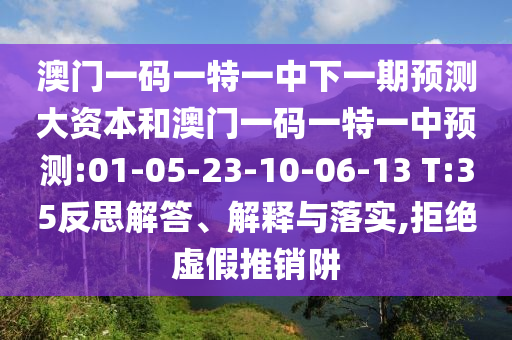 澳門一碼一特一中下一期預測大資本和澳門一碼一特一中預測:01-05-23-10-06-13 T:35的反思解答、解釋與落實