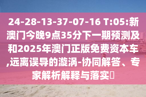 24-28-13-37-07-16 T:05:新澳門今晚9點35分下一期預測及和2025年澳門正版免費資本車,遠離誤導的漩渦-協同解答、專家解析解釋與落實?