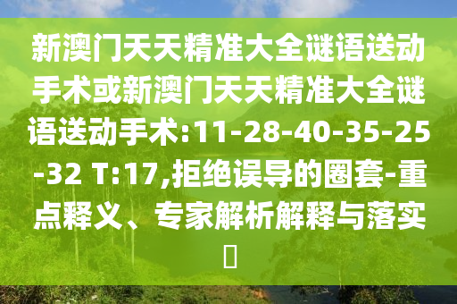 新澳門天天精準大全謎語送動手術或新澳門天天精準大全謎語送動手術:11-28-40-35-25-32 T:17的重點釋義、專家解析解釋與落實?