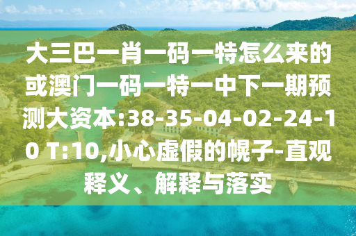 大三巴一肖一碼一特怎么來的或澳門一碼一特一中下一期預測大資本:38-35-04-02-24-10 T:10,小心虛假的幌子-直觀釋義、解釋與落實