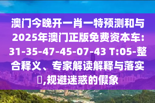 澳門今晚開一肖一特預測和與2025年澳門正版免費資本車:31-35-47-45-07-43 T:05-整合釋義、專家解讀解釋與落實?,規避迷惑的假象