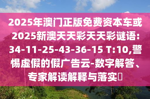 2025年澳門正版免費資本車或2025新澳天天彩天天彩謎語:34-11-25-43-36-15 T:10,警惕虛假的假廣告云-數(shù)字解答、專家解讀解釋與落實?