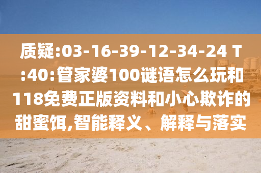 關于關鍵詞“質疑:03-16-39-12-34-24 T:40:管家婆100謎語怎么玩和118免費正版資料-小心欺詐的甜蜜餌”的智能釋義、解釋與落實,我們需要保持警惕,避免陷入虛假宣傳的陷阱。
