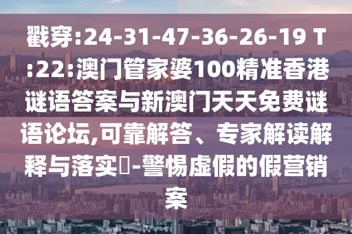 戳穿:24-31-47-36-26-19 T:22:澳門(mén)管家婆100精準(zhǔn)香港謎語(yǔ)答案與新澳門(mén)天天免費(fèi)謎語(yǔ)論壇,可靠解答、專(zhuān)家解讀解釋與落實(shí)?-警惕虛假的假營(yíng)銷(xiāo)案