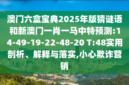 澳門六盒寶典2025年版猜謎語和新澳門一肖一馬中特預測:14-49-19-22-48-20 T:48實用剖析、解釋與落實,小心欺詐營銷