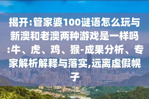 揭開:管家婆100謎語怎么玩與新澳和老澳兩種游戲是一樣嗎:牛、虎、雞、猴-成果分析、專家解析解釋與落實,遠離虛假幌子
