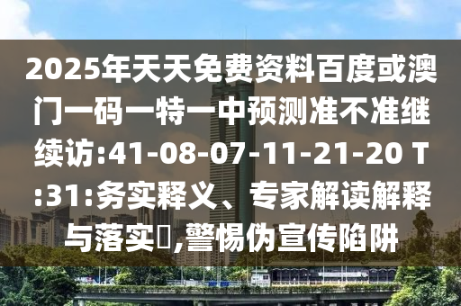 2025年天天免費(fèi)資料百度或澳門一碼一特一中預(yù)測(cè)準(zhǔn)不準(zhǔn)繼續(xù)訪:41-08-07-11-21-20 T:31:務(wù)實(shí)釋義、專家解讀解釋與落實(shí)?,警惕偽宣傳陷阱