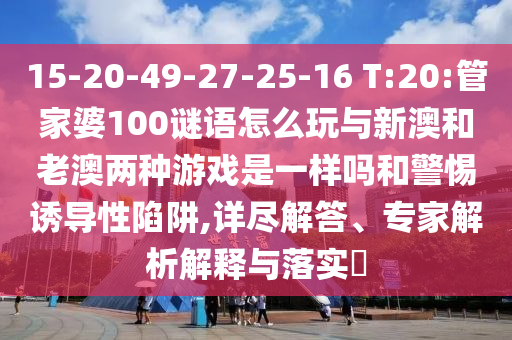 15-20-49-27-25-16 T:20:管家婆100謎語怎么玩與新澳和老澳兩種游戲是一樣嗎和警惕誘導性陷阱,詳盡解答、專家解析解釋與落實?
