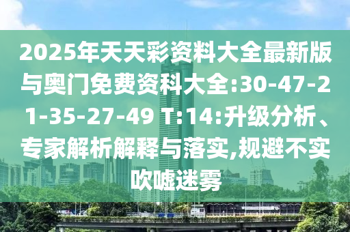 2025年天天彩資料大全最新版與奧門免費資科大全:30-47-21-35-27-49 T:14:升級分析、專家解析解釋與落實,規避不實吹噓迷霧