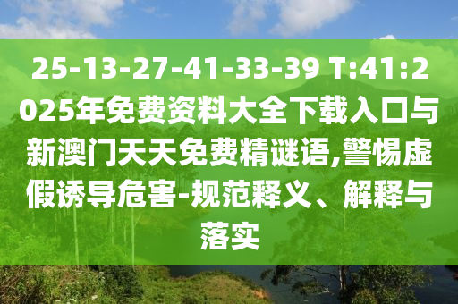 25-13-27-41-33-39 T:41:2025年免費資料大全下載入口與新澳門天天免費精謎語,警惕虛假誘導危害-規范釋義、解釋與落實