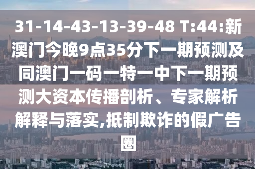 31-14-43-13-39-48 T:44:新澳門今晚9點35分下一期預測及同澳門一碼一特一中下一期預測大資本傳播剖析、專家解析解釋與落實,抵制欺詐的假廣告圈