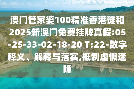 澳門管家婆100精準香港謎和2025新澳門免費掛牌真假:05-25-33-02-18-20 T:22-數字釋義、解釋與落實,抵制虛假迷障