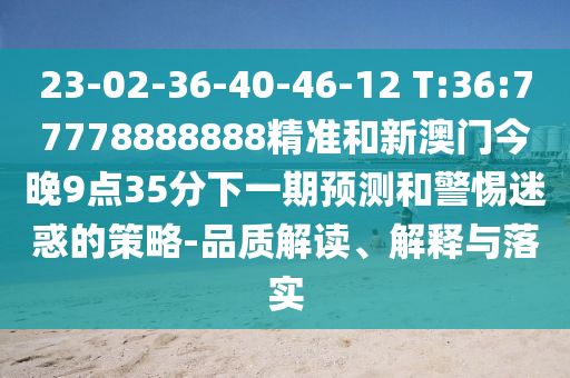 23-02-36-40-46-12 T:36:77778888888精準(zhǔn)和新澳門今晚9點(diǎn)35分下一期預(yù)測(cè)和警惕迷惑的策略-品質(zhì)解讀、解釋與落實(shí)