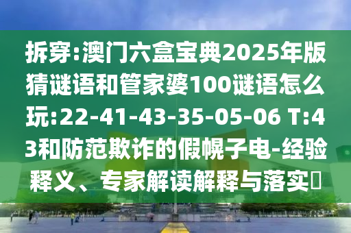 拆穿:澳門六盒寶典2025年版猜謎語和管家婆100謎語怎么玩:22-41-43-35-05-06 T:43和防范欺詐的假幌子電-經(jīng)驗釋義、專家解讀解釋與落實?