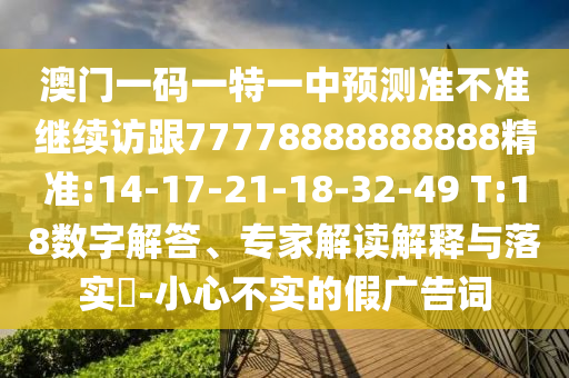 澳門一碼一特一中預測準不準繼續(xù)訪跟77778888888888精準:14-17-21-18-32-49 T:18數(shù)字解答、專家解讀解釋與落實?-小心不實的假廣告詞