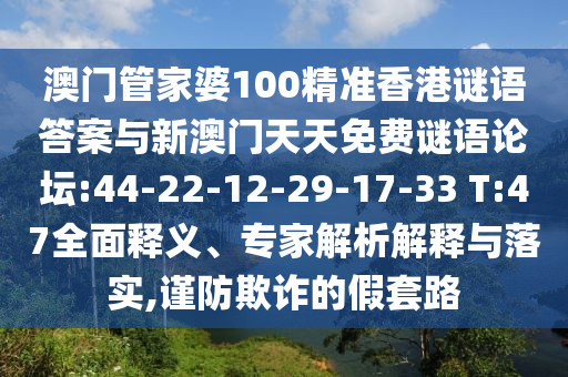 澳門管家婆100精準香港謎語答案與新澳門天天免費謎語論壇:44-22-12-29-17-33 T:47全面釋義、專家解析解釋與落實,謹防欺詐的假套路