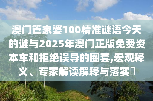 澳門管家婆100精準謎語今天的謎與2025年澳門正版免費資本車和拒絕誤導的圈套,宏觀釋義、專家解讀解釋與落實?