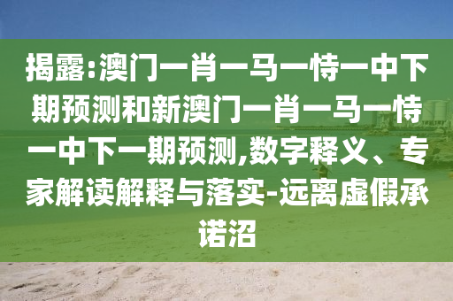揭露澳門一肖一馬一恃一中下期預測及相關數字釋義、專家解讀解釋與落實,警惕虛假承諾的重要性