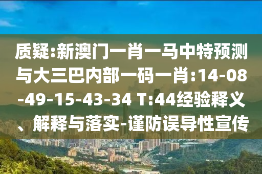 質(zhì)疑:新澳門一肖一馬中特預(yù)測(cè)與大三巴內(nèi)部一碼一肖:14-08-49-15-43-34 T:44經(jīng)驗(yàn)釋義、解釋與落實(shí)-謹(jǐn)防誤導(dǎo)性宣傳