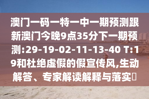 澳門一碼一特一中一期預(yù)測跟新澳門今晚9點35分下一期預(yù)測:29-19-02-11-13-40 T:19和杜絕虛假的假宣傳風(fēng),生動解答、專家解讀解釋與落實?