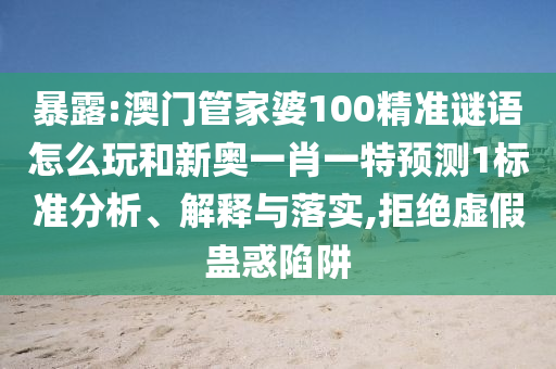 暴露:澳門管家婆100精準謎語怎么玩和新奧一肖一特預測1標準分析、解釋與落實,拒絕虛假蠱惑陷阱