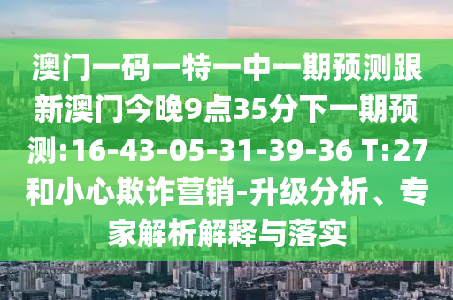 澳門一碼一特一中一期預測跟新澳門今晚9點35分下一期預測:16-43-05-31-39-36 T:27和小心欺詐營銷-升級分析、專家解析解釋與落實