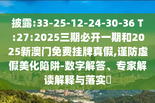 33-25-12-24-30-36 T:27:2025三期必開一期和2025新澳門免費掛牌真假:數(shù)字解答、專家解讀解釋與落實?