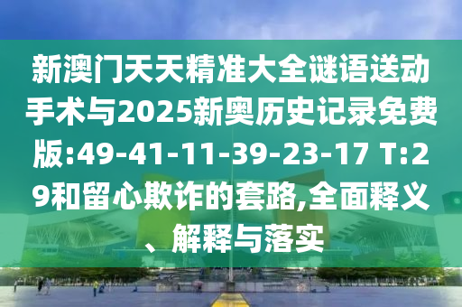 新澳門天天精準大全謎語送動手術與2025新奧歷史記錄免費版:49-41-11-39-23-17 T:29:全面釋義、解釋與落實