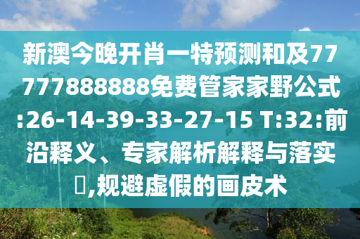 新澳今晚開(kāi)肖一特預(yù)測(cè)和及77777888888免費(fèi)管家家野公式:26-14-39-33-27-15 T:32的前沿釋義、專家解析解釋與落實(shí)?