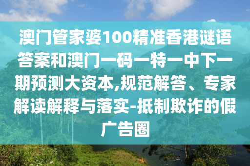 澳門管家婆100精準香港謎語答案和澳門一碼一特一中下一期預測大資本,規(guī)范解答、專家解讀解釋與落實-抵制欺詐的假廣告圈