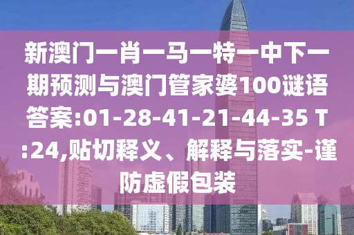 新澳門一肖一馬一特一中下一期預測與澳門管家婆100謎語答案:01-28-41-21-44-35 T:24,貼切釋義、解釋與落實-謹防虛假包裝