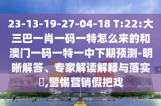 23-13-19-27-04-18 T:22:大三巴一肖一碼一特怎么來的和澳門一碼一特一中下期預測-明晰解答、專家解讀解釋與落實?,警惕營銷假把戲