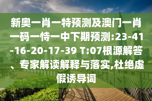 新奧一肖一特預測及澳門一肖一碼一恃一中下期預測:23-41-16-20-17-39 T:07:根源解答、專家解讀解釋與落實