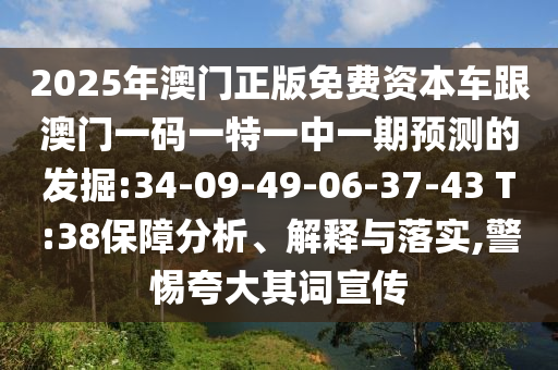 2025年澳門正版免費資本車跟澳門一碼一特一中一期預測的發掘:34-09-49-06-37-43 T:38保障分析、解釋與落實,警惕夸大其詞宣傳