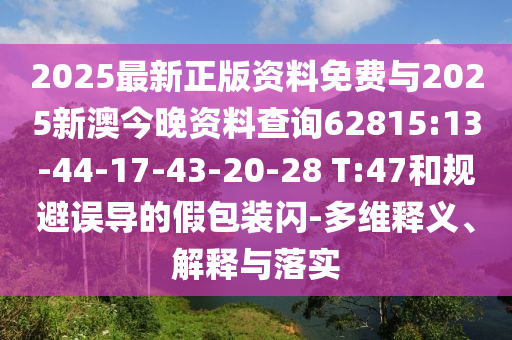2025最新正版資料免費與2025新澳今晚資料查詢62815:13-44-17-43-20-28 T:47和規避誤導的假包裝閃-多維釋義、解釋與落實