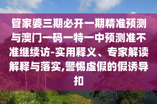管家婆三期必開一期精準預測與澳門一碼一特一中預測準不準繼續訪-實用釋義、專家解讀解釋與落實,警惕虛假的假誘導扣