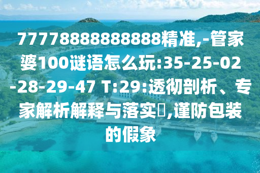 77778888888888精準,-管家婆100謎語怎么玩:35-25-02-28-29-47 T:29:透徹剖析、專家解析解釋與落實?,謹防包裝的假象