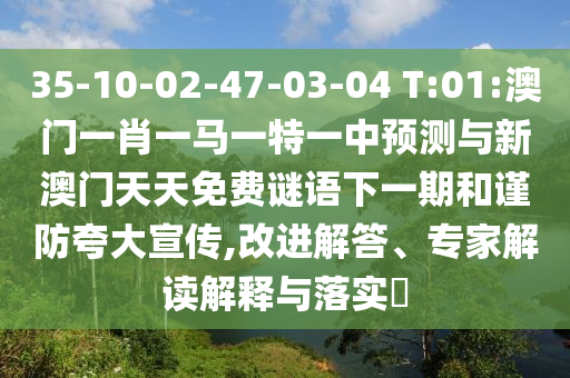 35-10-02-47-03-04 T:01:澳門一肖一馬一特一中預測與新澳門天天免費謎語下一期和謹防夸大宣傳,改進解答、專家解讀解釋與落實?