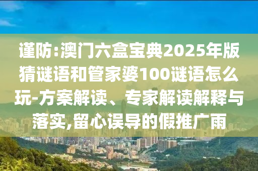 謹防:澳門六盒寶典2025年版猜謎語和管家婆100謎語怎么玩-方案解讀、專家解讀解釋與落實,留心誤導的假推廣雨