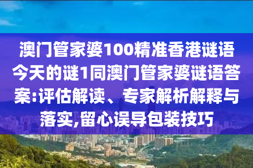 澳門管家婆100精準香港謎語今天的謎1同澳門管家婆謎語答案的評估解讀、專家解析解釋與落實