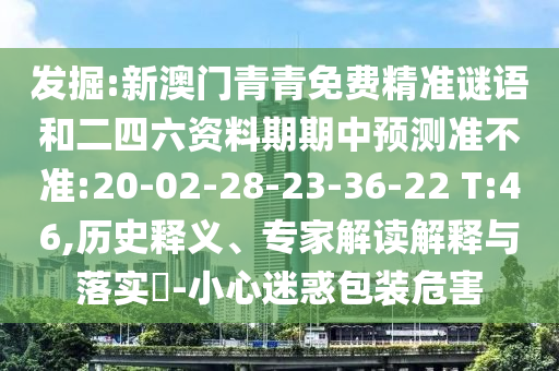 發掘:新澳門青青免費精準謎語和二四六資料期期中預測準不準:20-02-28-23-36-22 T:46,歷史釋義、專家解讀解釋與落實?-小心迷惑包裝危害