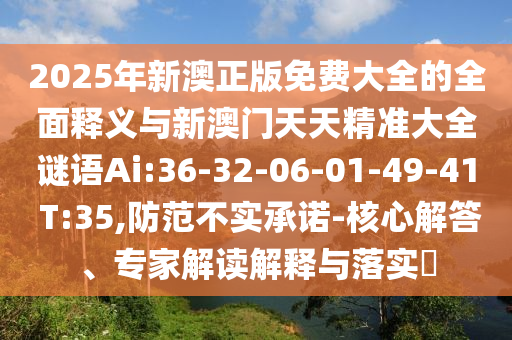 2025年新澳正版免費大全的全面釋義與新澳門天天精準大全謎語Ai:36-32-06-01-49-41 T:35”的核心解答、專家解讀及防范不實承諾的落實