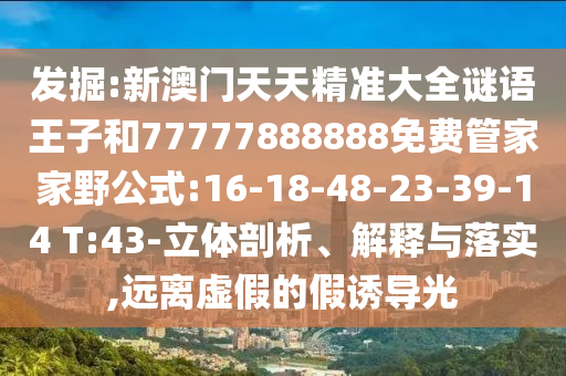 發掘:新澳門天天精準大全謎語王子和77777888888免費管家家野公式:16-18-48-23-39-14 T:43-立體剖析、解釋與落實,遠離虛假的假誘導光